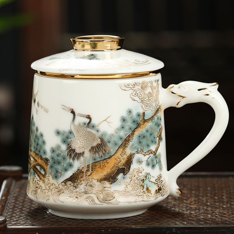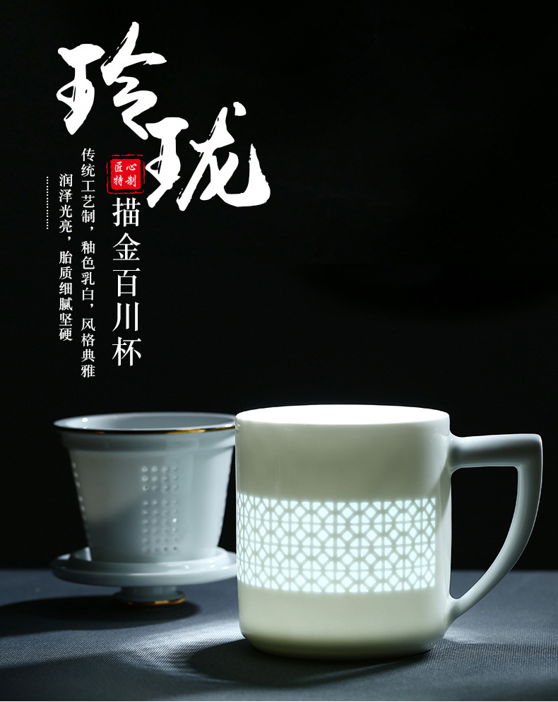 景徳鎮の精巧な陶磁器の濾過の湯飲みは蓋のお茶を持ってお茶を分離して湯飲みの家庭用のコップの事務の贈り物のコップを入れます。