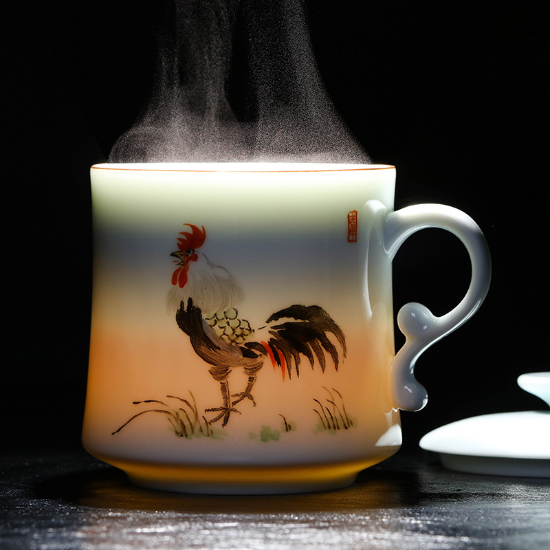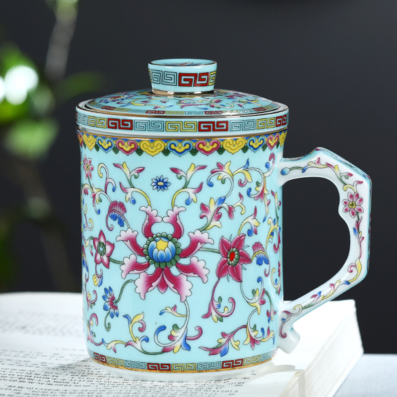 景徳鎮セラミックフィルターカップ蓋付き中国風エナメルカップオフィス泡カップ茶水分離カップ