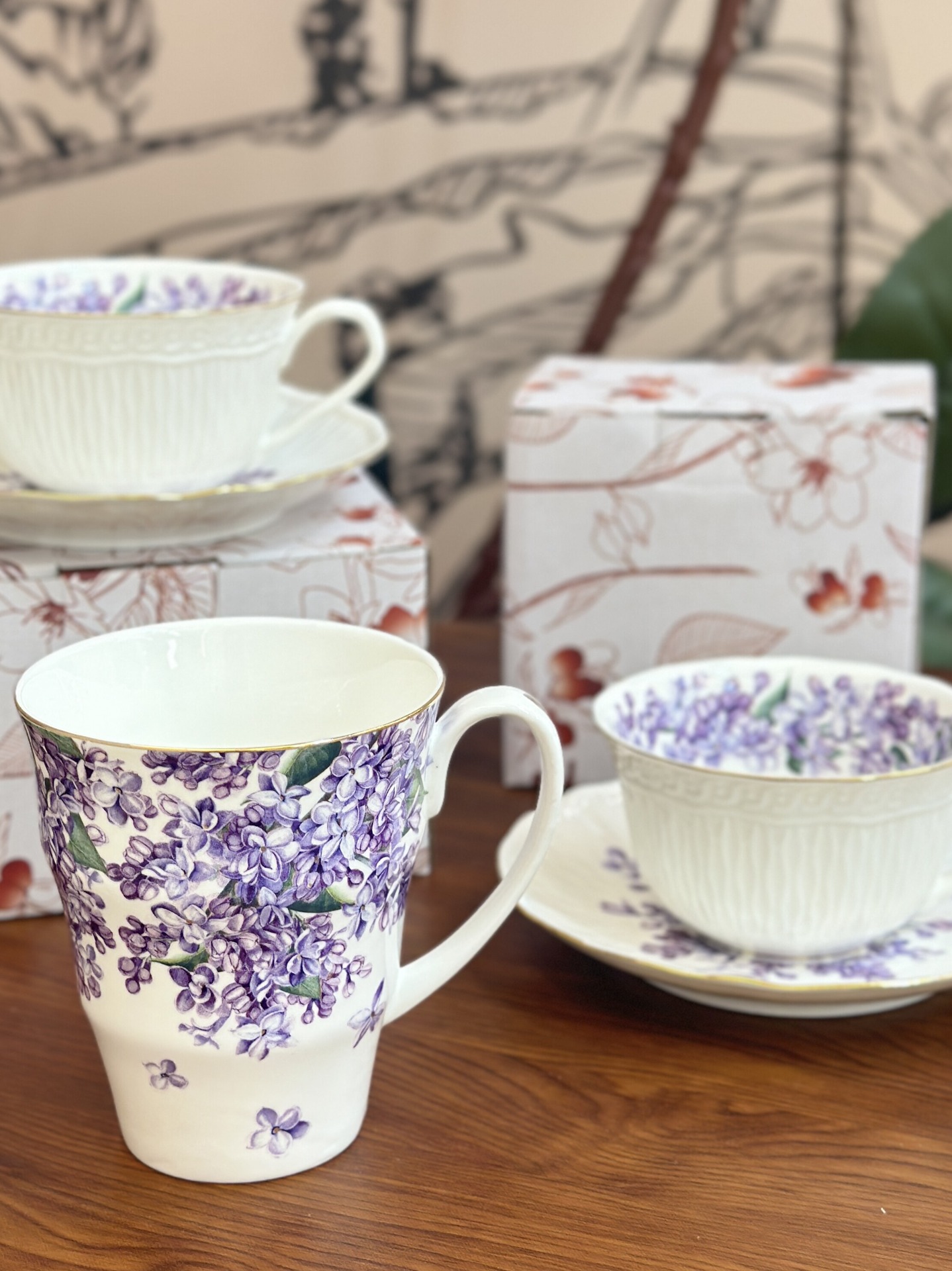 モネ後花園輸出骨磁器レリーフ紫クローブコーヒーカップ皿シンプルレリーフ下昼寝カップ皿