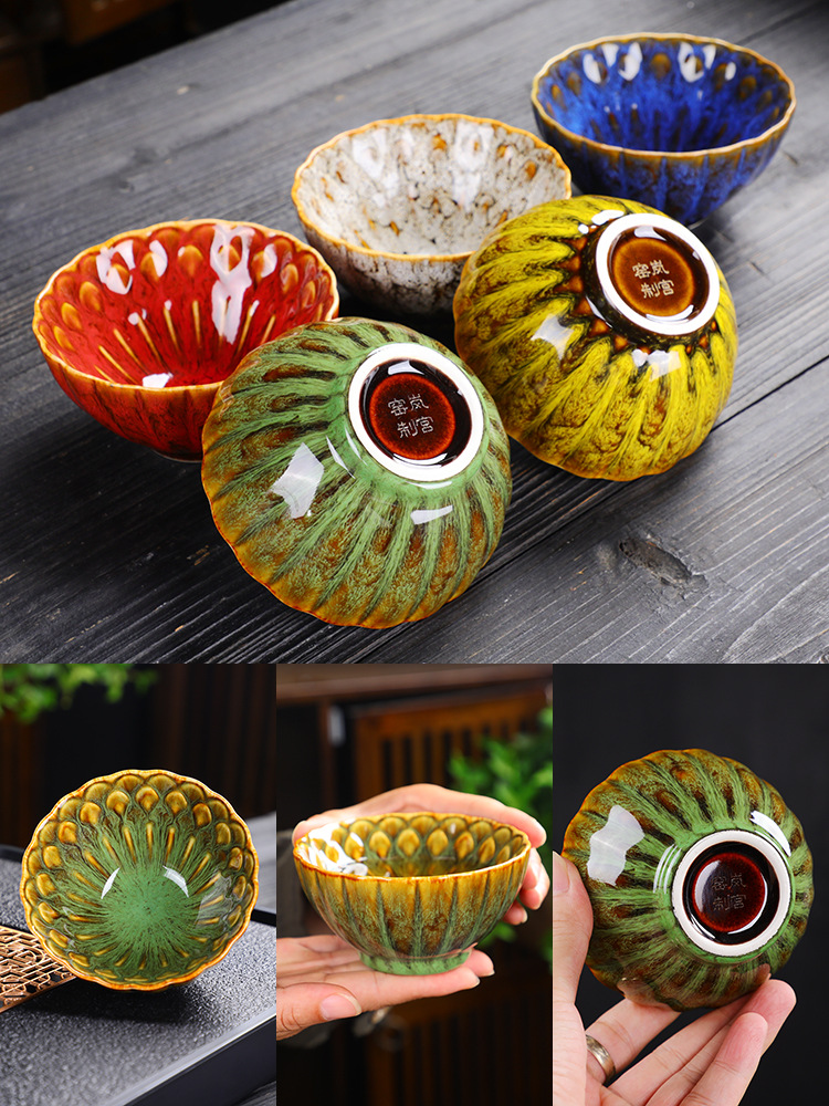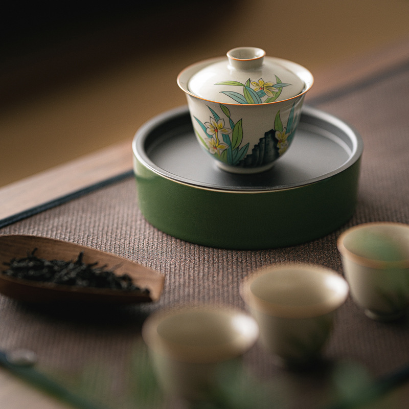 草木灰手描き蓋碗セット陶磁器カップ蓋碗品茗杯ガラス公杯鉄蓋壺承