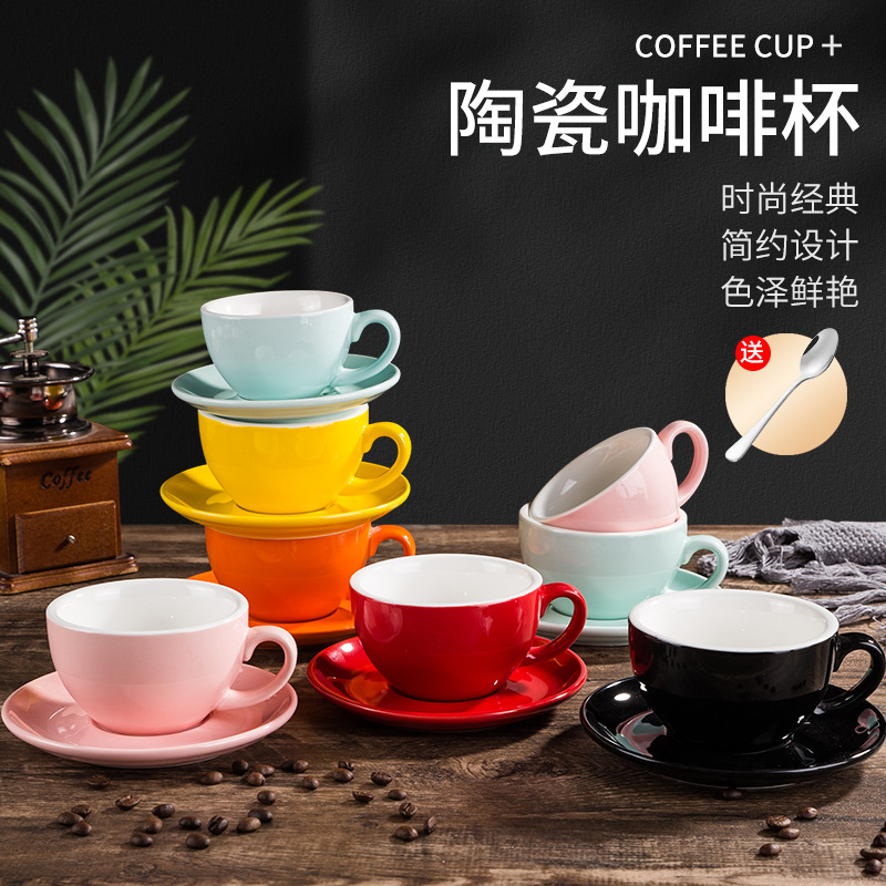 ヨーロッパ風ラテコーヒーカップスプーンセットセラミック色釉薬花式大口引き花式カプチーノ