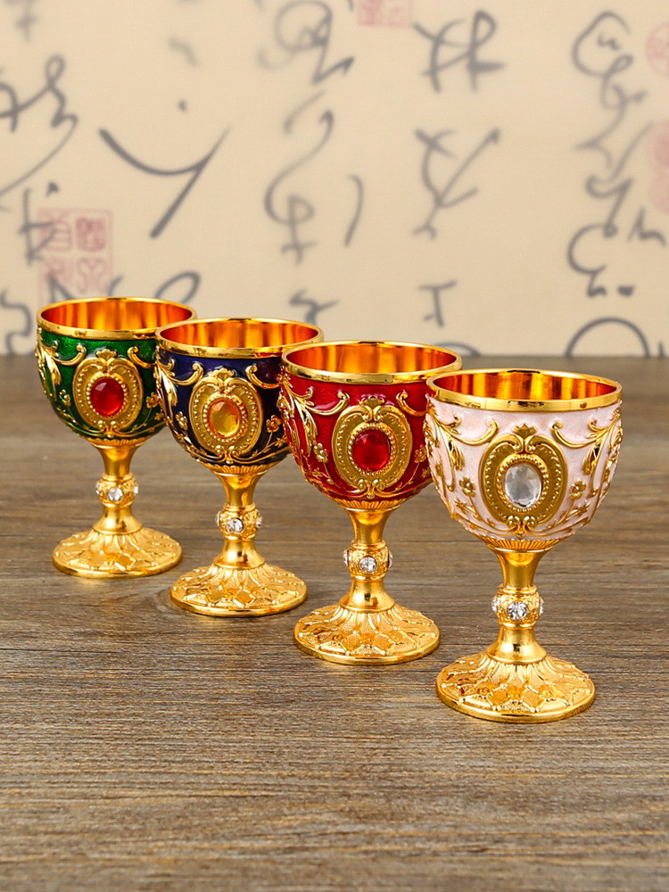 ヨーロッパ式の金属の宝石の小さい酒の杯は杯の1口の杯の30ミリリットルの創意の復古の家庭用ガラスの白酒の杯を供えます。