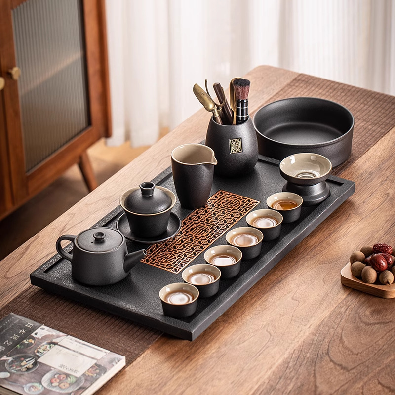 工夫茶器セット日本式陶磁器家庭用オフィス軽豪華茶器茶盤茶壺蓋碗セット