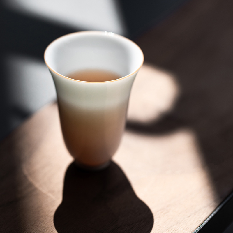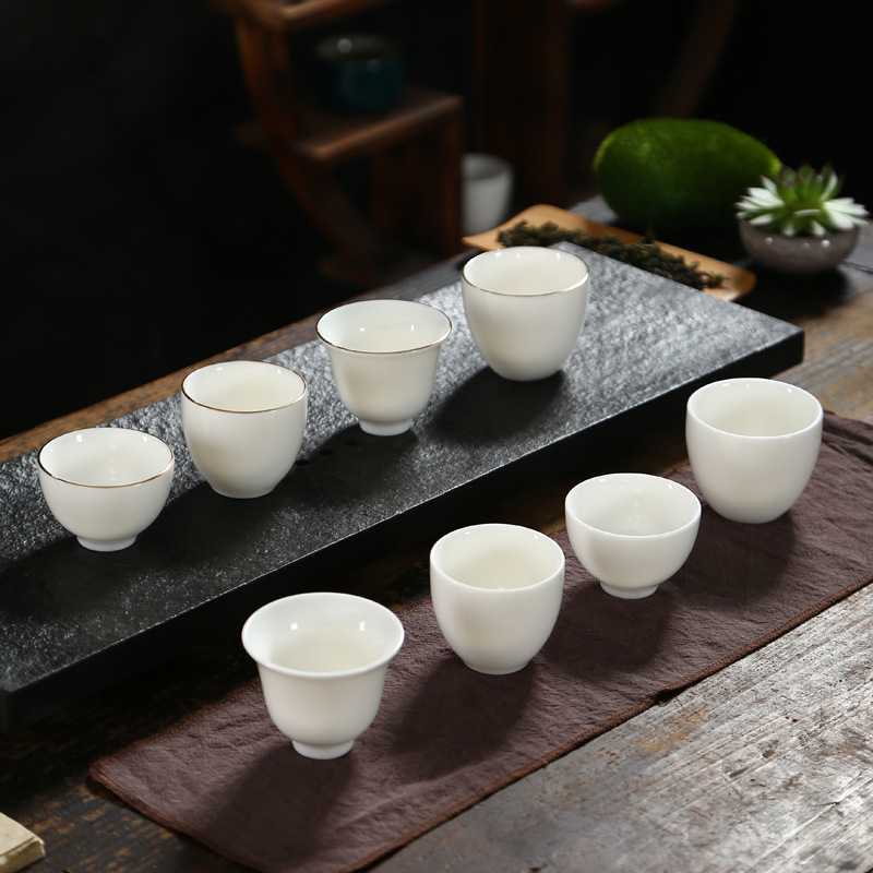 家庭用羊脂玉工夫ティーカップ徳化白磁器描金品茗杯三才杯陶磁器純白シングルカップ主人カップ