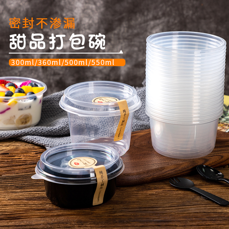 丸型使い捨てフルーツボックス、タロイモボール、砂糖水、氷粉ボウル、焼き草ゼリー、ダブルスキンミルクデザート包装箱