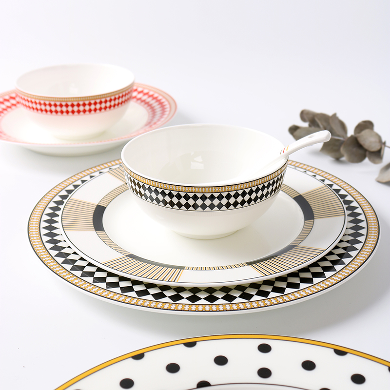 ヨーロッパのライト高級金縁セラミックライスボウルスープボウル家庭用ディッシュプレート洋食プレートセットボーンチャイナ食器