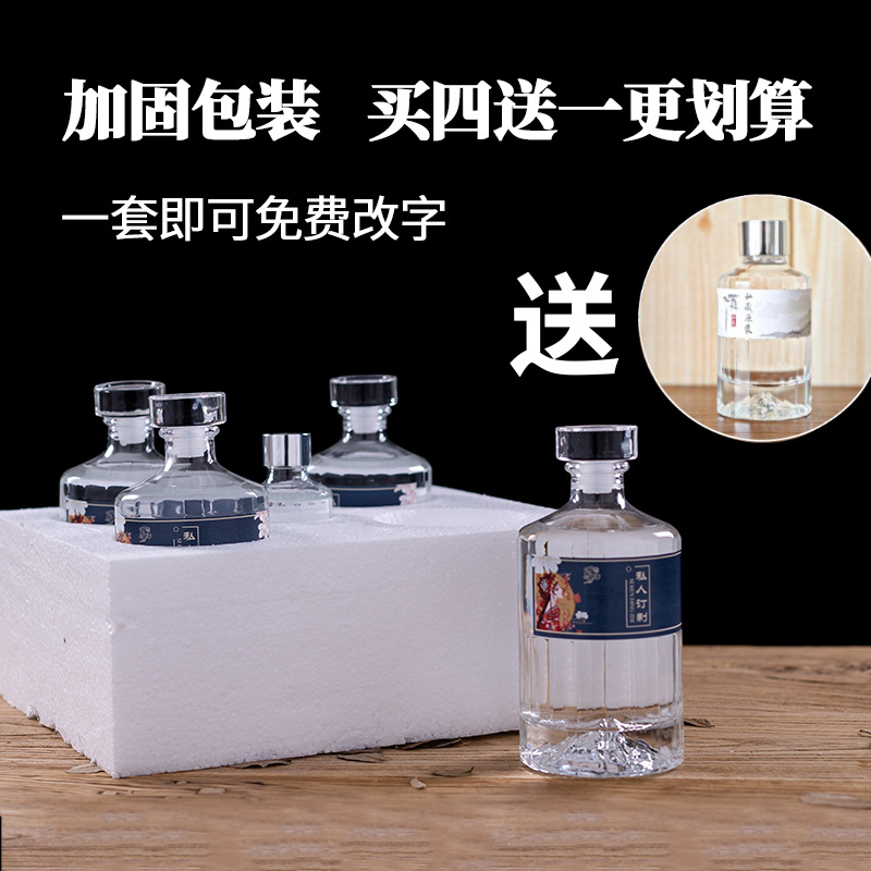 白瓶500ml透明ガラス空瓶フルケース蓋付き貯蔵酒瓶密封包装瓶セット卸売り