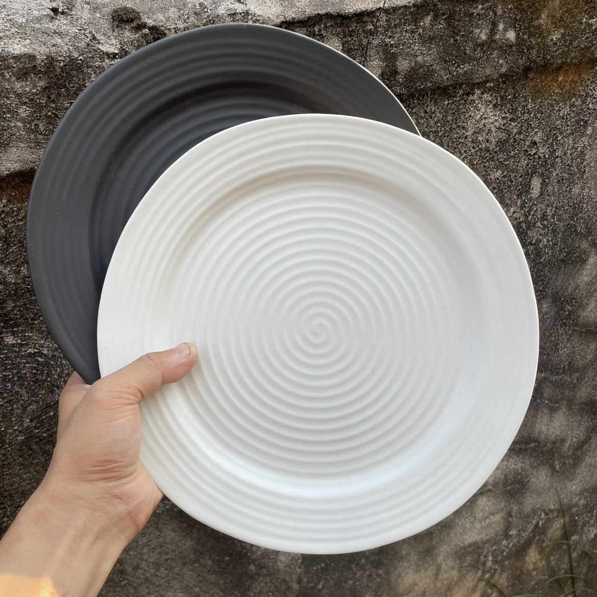 アメリカの定番色の陶磁器の浅草の帽子の皿のつや消しのレリーフのねじの家庭用の料理の皿の不規則な皿の西洋の食器