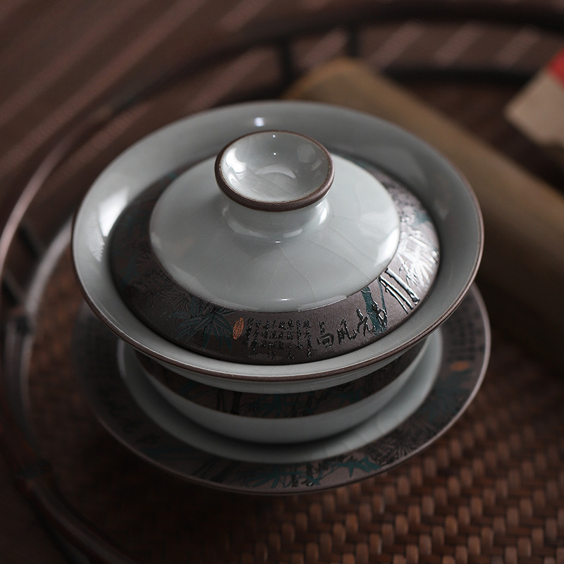 哥窯蓋碗茶杯陶磁器の工夫茶蓋碗の怡心介杯三才碗のお茶カップのティーポット