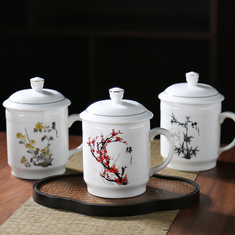 梅蘭竹菊陶磁器カップ家庭用大容量カップ蓋付きオフィス会議カップギフトカップセット