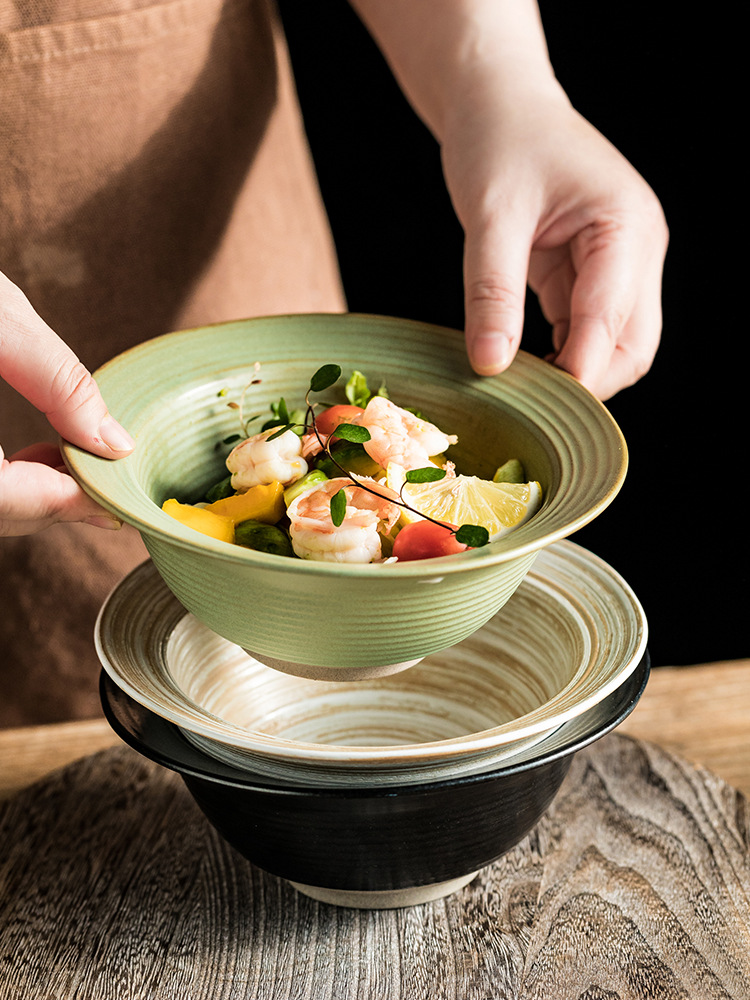 粗陶麦わら帽子碗感果物サラダ碗創意家庭用陶磁器碗スープ碗煮餃子スープ碗深碗