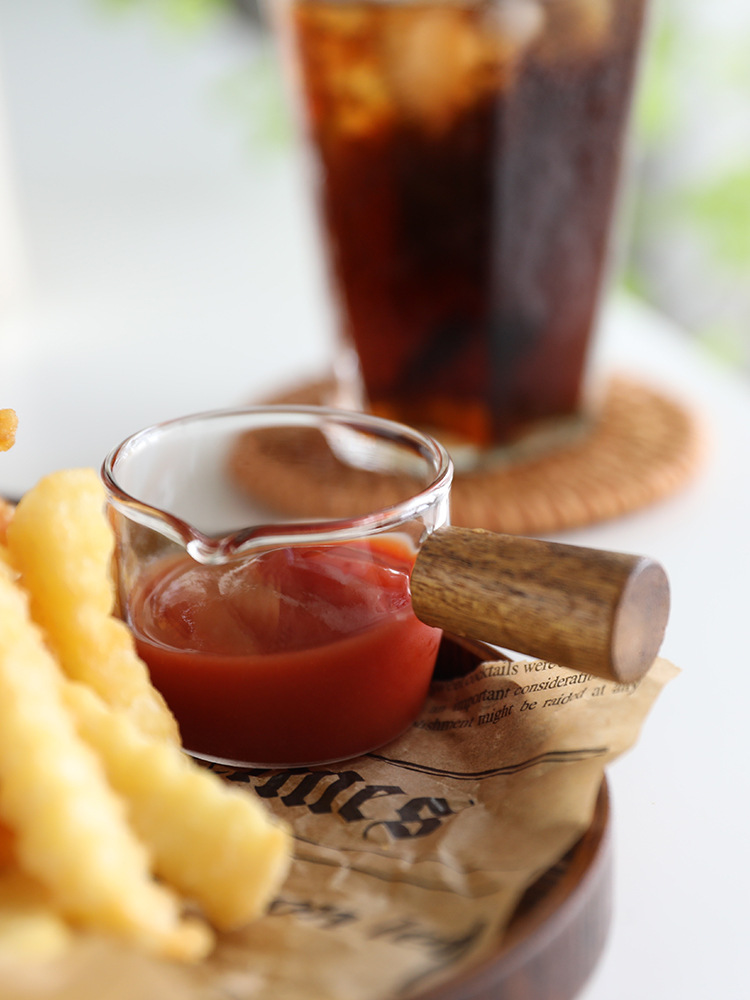 Insガラスミルクポット厚い木柄ハンドルミルクカップカフェ調味料ソース皿洋食ジュース闘家用