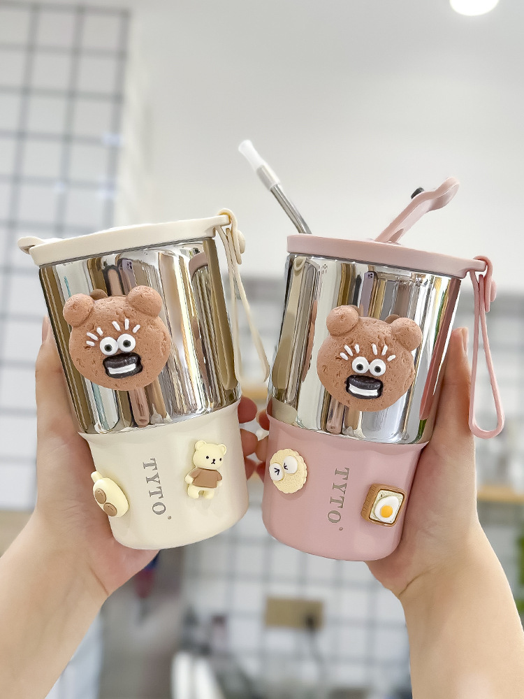軽い贅沢な鏡面保温カップins風高颜値コーヒーカップストロー付き携帯オフィスカップ女子ネット赤カップ