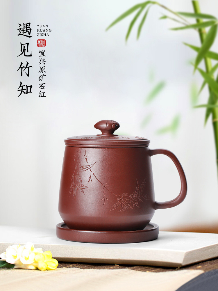 宜興紫砂杯純手彫刻原鉱石紅紫砂茶水分離個人泡茶杯単コップ