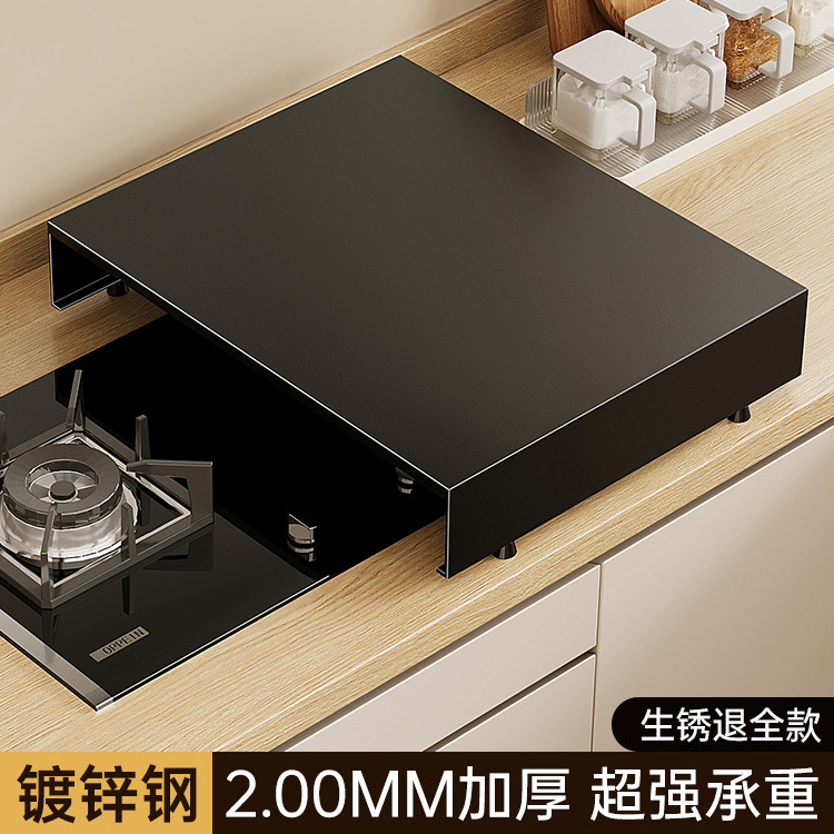 ガスコンロのカバーは台所の物置台の猛ストーブ台をカバーして、電気ストーブの棚のガスコンロの棚を高くします。
