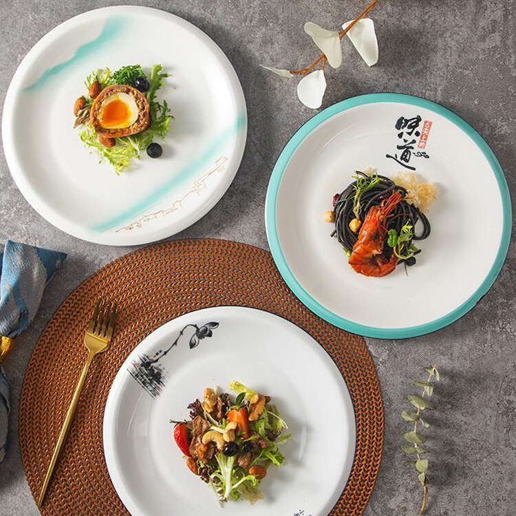 中国式浅盤陶磁器平盤家庭用釉薬下彩盤円盤料理盤商用レストラン中国風置物食器