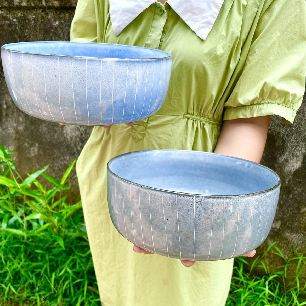 古い風の手描きの線の陶磁器の碗の9インチのinsの風の高い顔の価値の酸っぱい魚の碗の復古のスープの碗と麺を作ります。