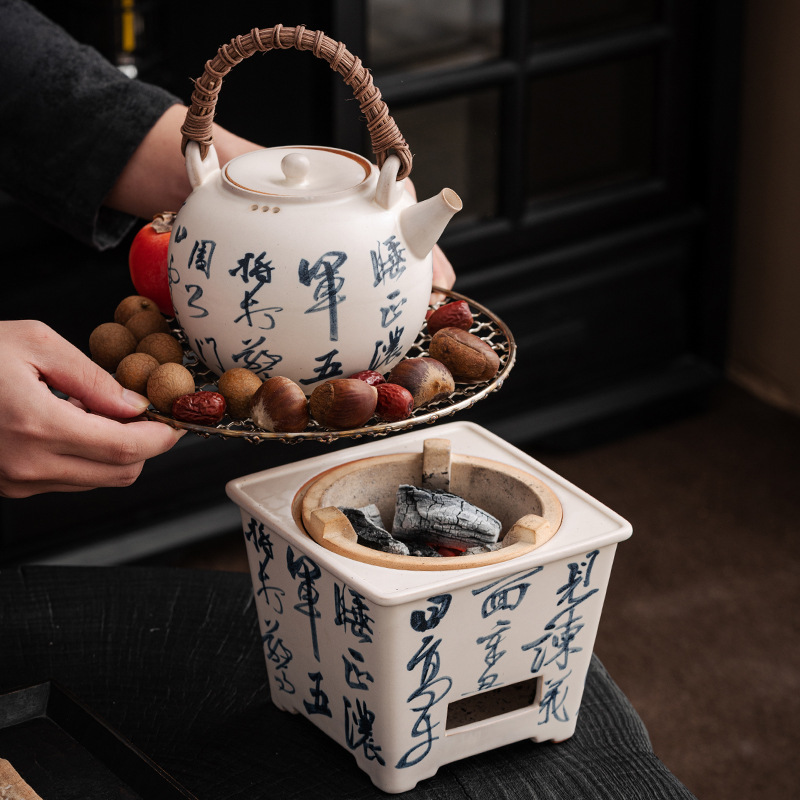 囲炉煮茶器焼き茶手書き木炭炉家庭用室内和風陶磁器屋外バーベキューストーブ湯たんぽ