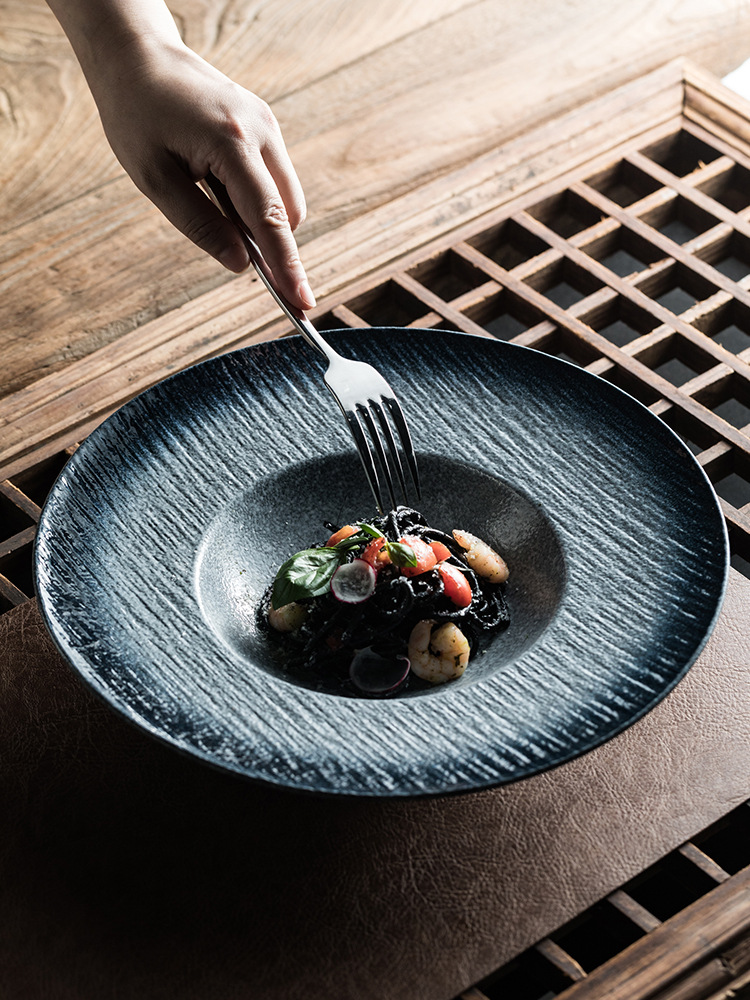日本式の石紋の麦わら帽子の皿の釉薬の下で彩の陶磁器のお茶のレストランのスープの皿の感の料理の皿の冷たい料理の皿