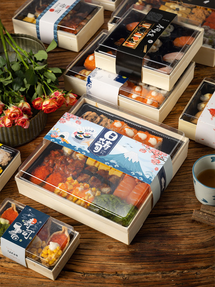寿司の包装箱の外食用使い捨て弁当箱の業務用日本式寿司箱の木の販売箱の弁当箱の弁当箱