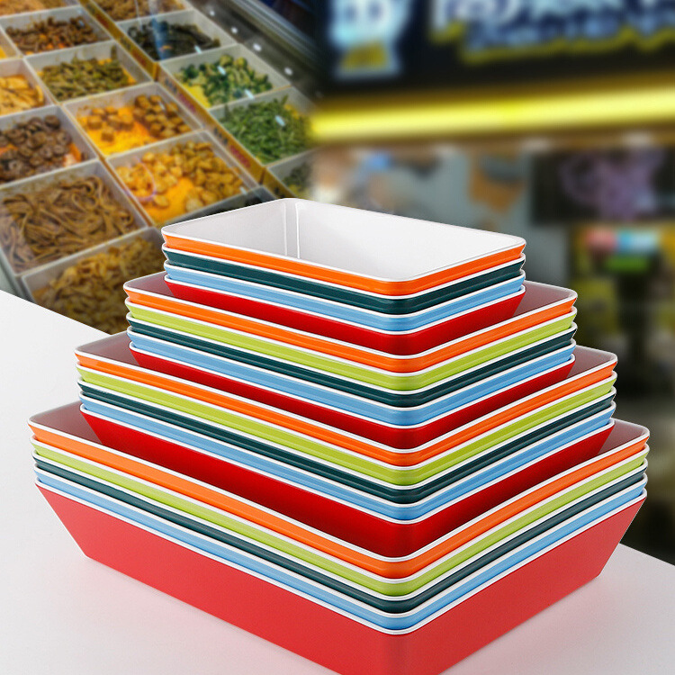 調理済みのハロゲン料理の展示皿の鍋と串の皿のメラミン長方形の冷たい料理の展示箱の業務用の2色