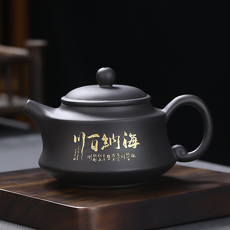 描金原鉱紫砂半手作りポット家庭用可養泡茶器中国風工夫茶器小ティーポット純色