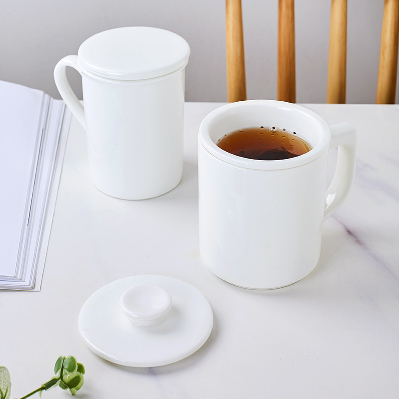 白い骨磁器カップ蓋付き景徳鎮陶磁器カップ白いカップオフィス個人カップのカスタマイズ