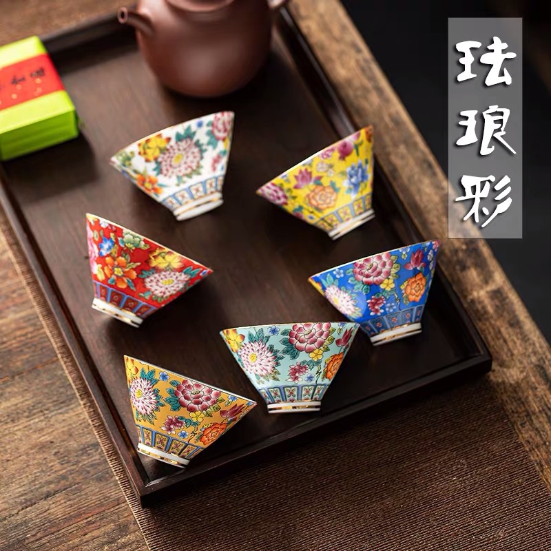 エナメル陶器マスターカップカンフーティーセットお茶碗家庭用小さなカップ品茗杯白磁器シングルカップティーカップ