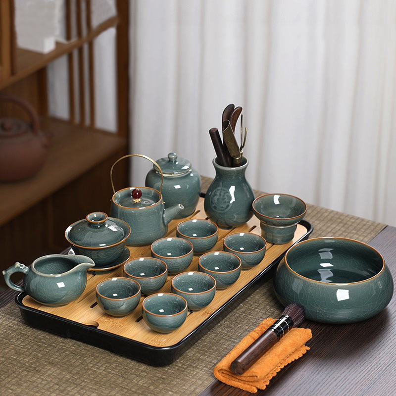竜泉の青磁の兄の窯の工夫の茶器の事務室のスーツの家庭用の軽い豪華な陶磁器のお茶のつぼの杯のセットは復古します。