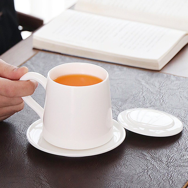 羊脂玉磁器カップ個人オフィスマグカップ陶磁器蓋付き白磁器カップ家庭用コップ
