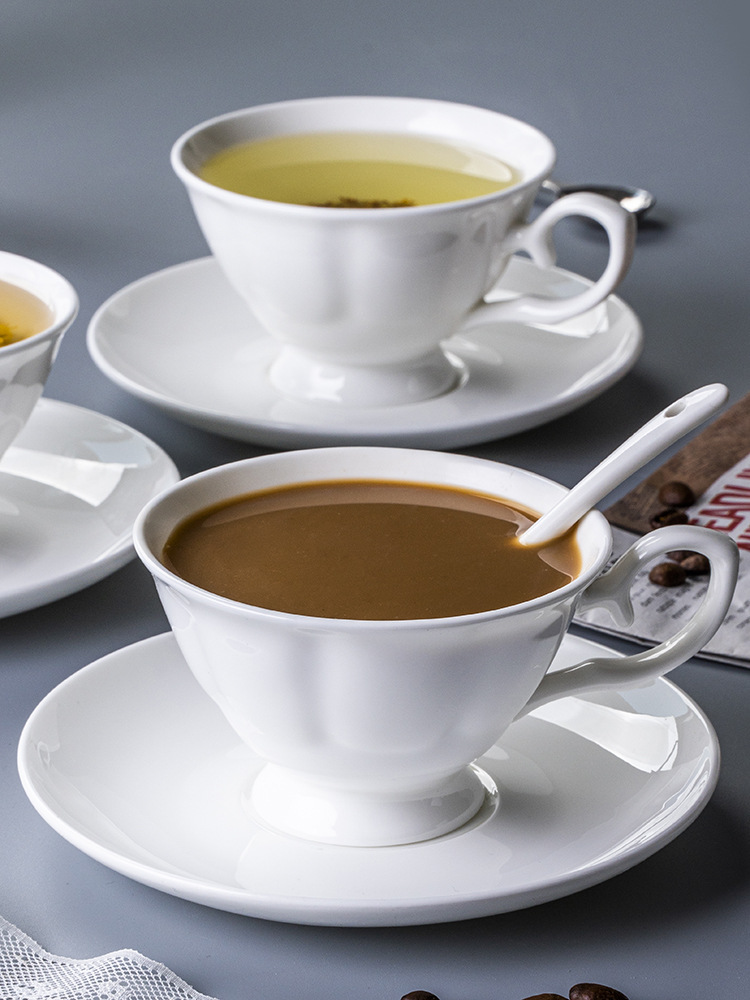 イギリス式午後ティーカップ大口コーヒーカップ釉薬下彩陶磁器高足コーヒーカップ皿シンプルな白い骨磁器カップ棚