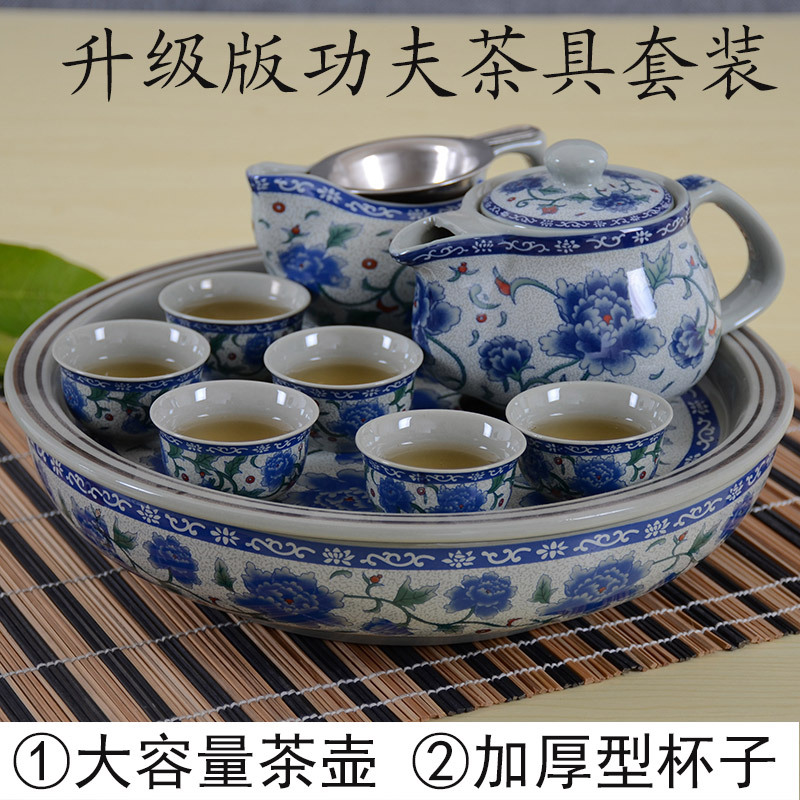 工夫茶工夫茶器セット家庭用磁器中国式青花磁器青牡丹セット陶磁器茶台茶皿