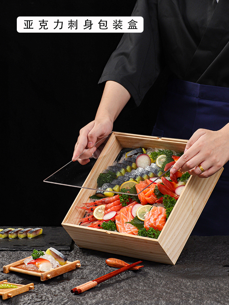 刺身包装箱日本式使い捨て刺身箱木製弁当箱刺身外販売箱商用包装箱外