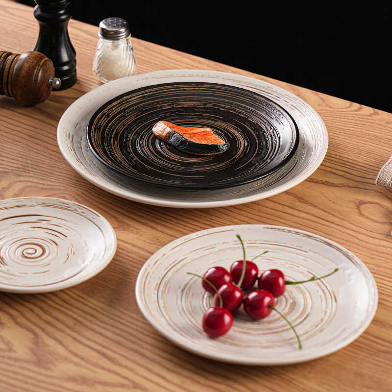 創意ファッション商用円形皿大サイズ陶磁器骨皿食器セット食事皿料理皿洋食平皿