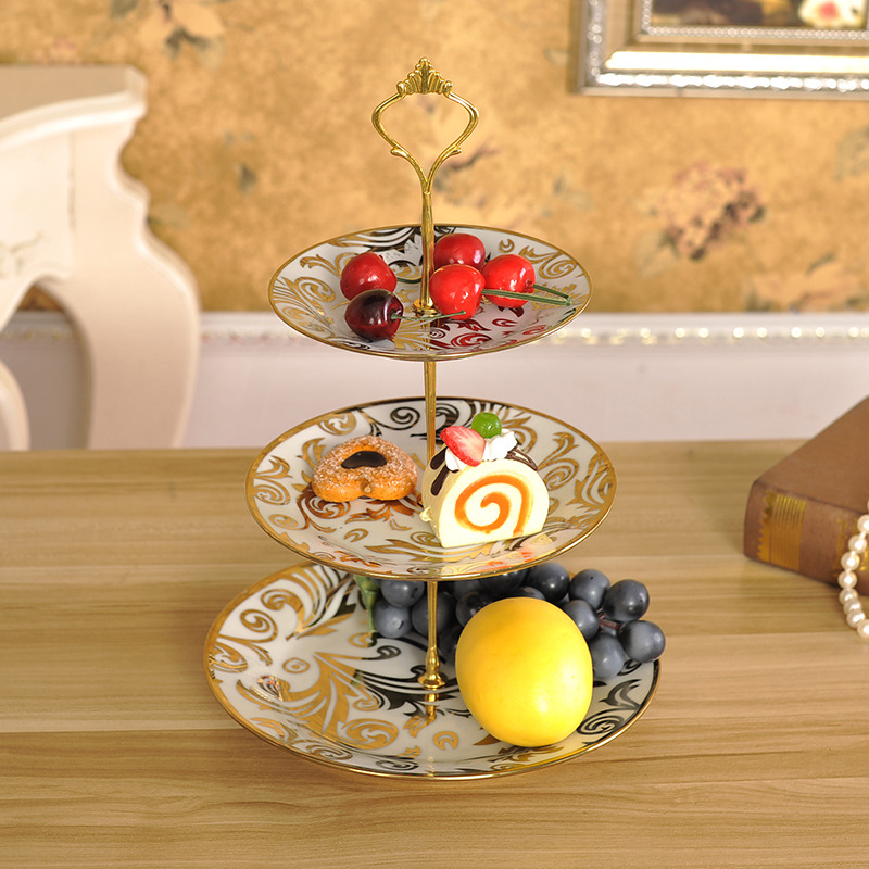 ヨーロッパの3層の果物の皿の家庭用のお茶のいくつかのお菓子の皿の創意の陶磁器のケーキの皿の多層の2層のドライフルーツの皿