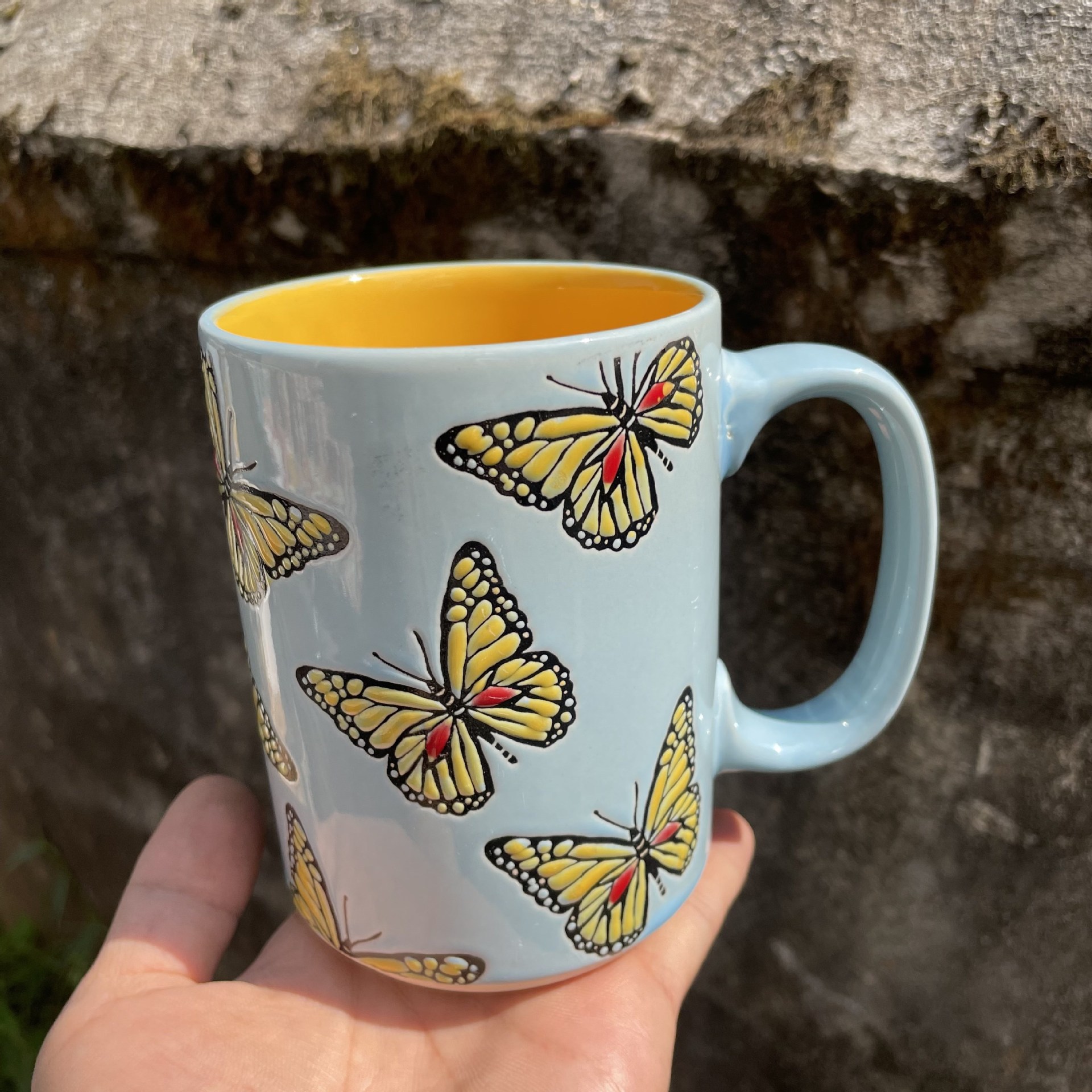 イラスト手描き風蝶セラミックマグカップのテーブルの置物水を飲むお茶のコップのジュースの飲み物のコップのオフィスの客間