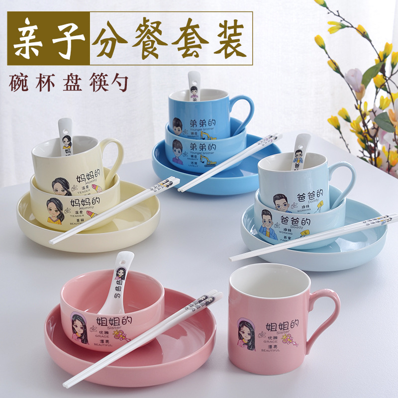 家庭分食食器セット陶磁器親子食器皿専門家は家庭用食器と箸を区別してコップを飲む