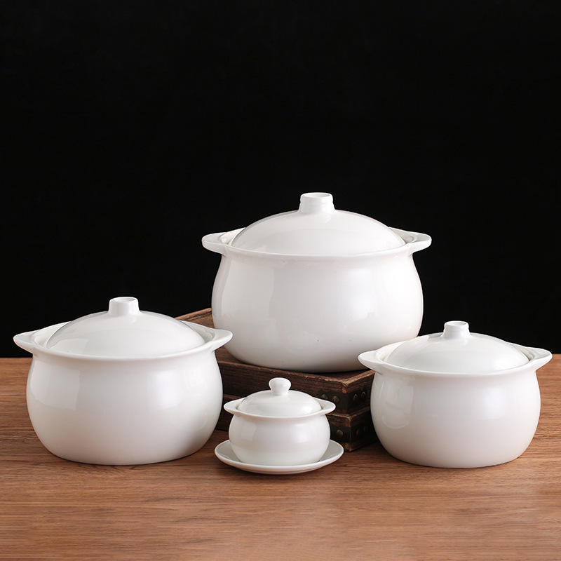 陶磁器のスープの巣の大容量の商用の土鍋の形の光の面はふたがあります。