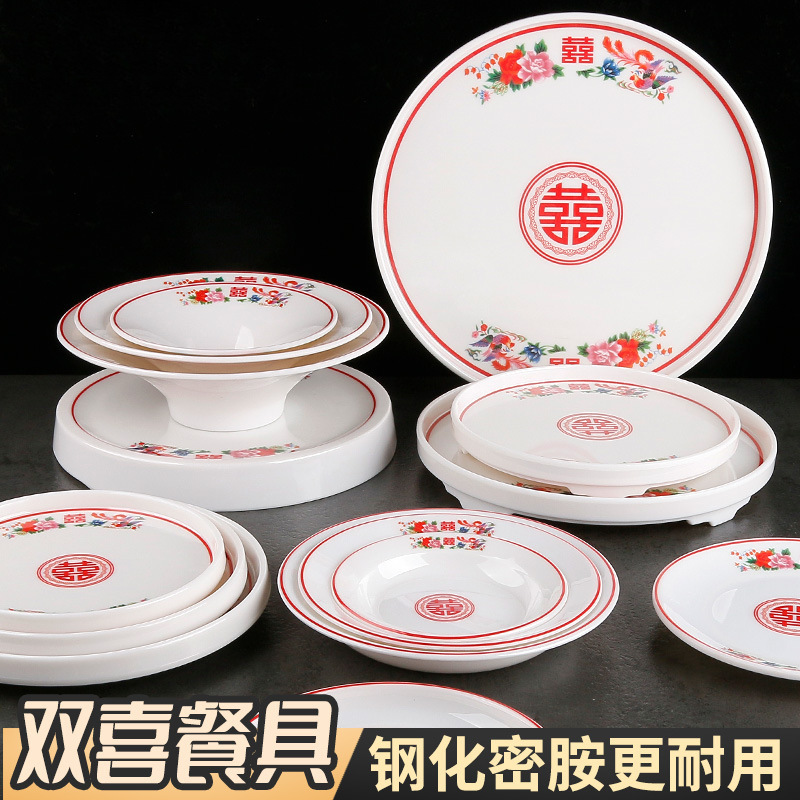 メラミン紅双喜碗潮集鮮品市井火鍋店のおかず皿の字の皿の古いレトロな食器