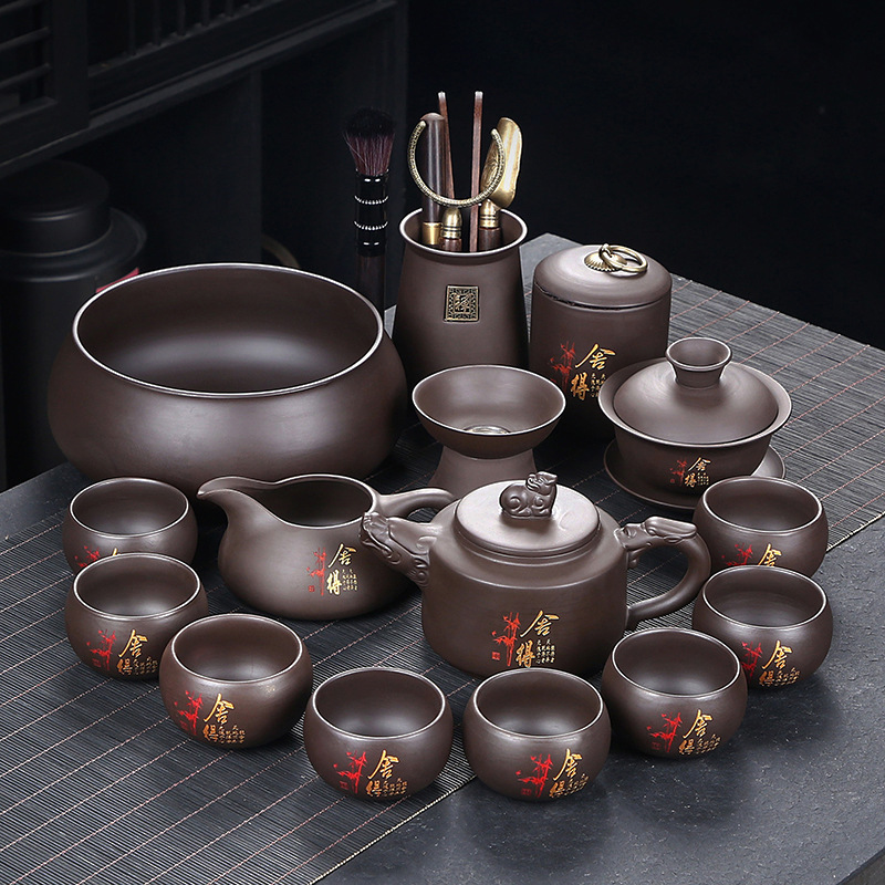 金紫砂工夫茶器セットティーポットカップセット茶器実木茶盤家庭用中国式原鉱泥
