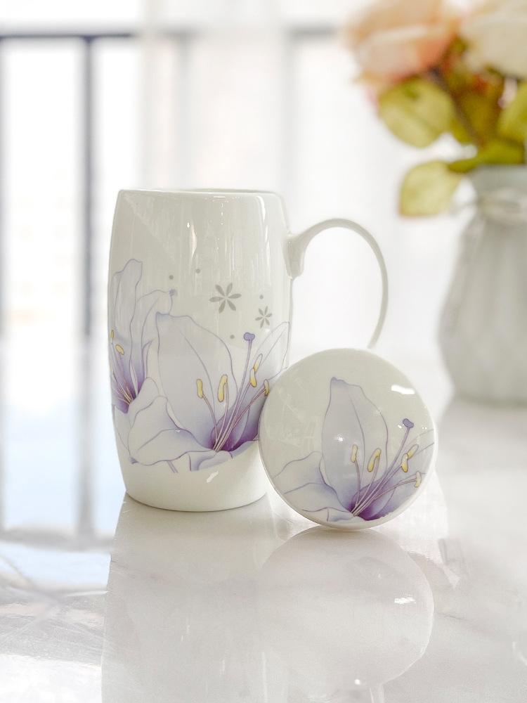 500ml骨磁器マグカップ女性大容量蓋付きオフィス水カップセラミックカップ2024新製品