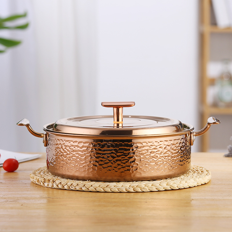 日本式304ステンレス鴨鍋ハンマースープ鍋金色電磁炉双耳鍋三層鋼鍋業務用