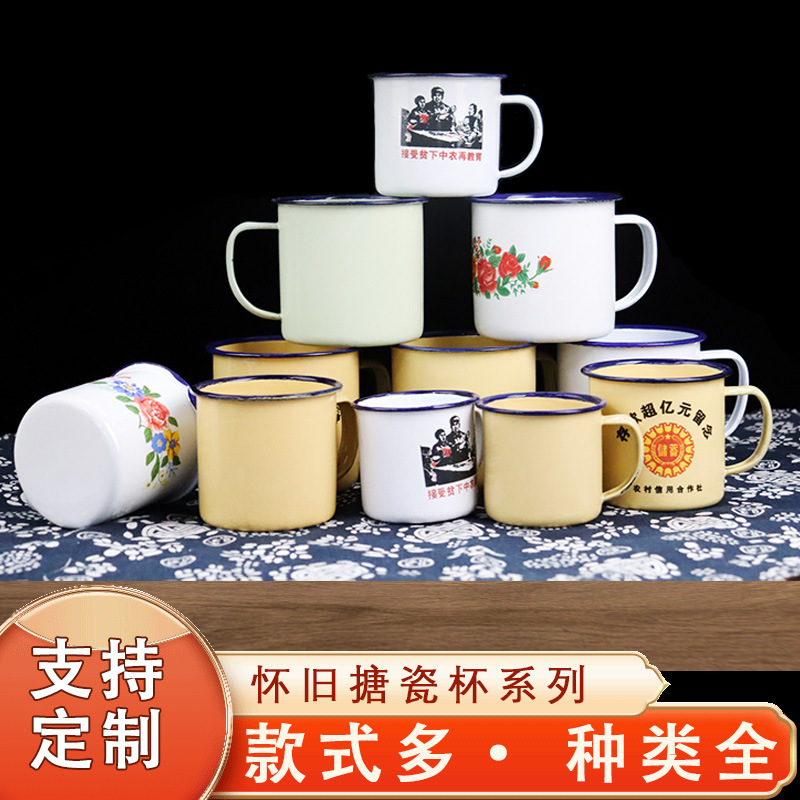 エナメルカップレトロ古典的なレトロなレストランホテルの古いエナメル鉄カップ茶シリンダー老幹部カップ