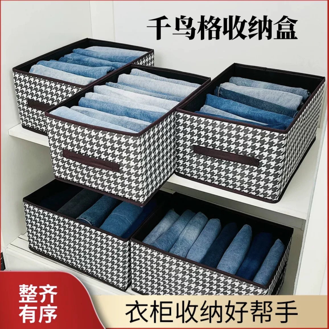 千鳥格服収納ボックス家庭用布芸服ズボン整理箱タンス層折りたたみ収納ボックス卸売り