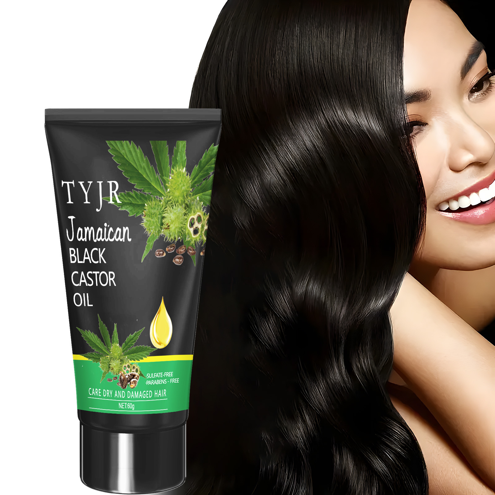 TYJR ジャマイカ ブラック ヒマシ油 ヘアマスクには、保湿、栄養、光沢を与えるブラック ヒマシ エッセンスが含まれています。