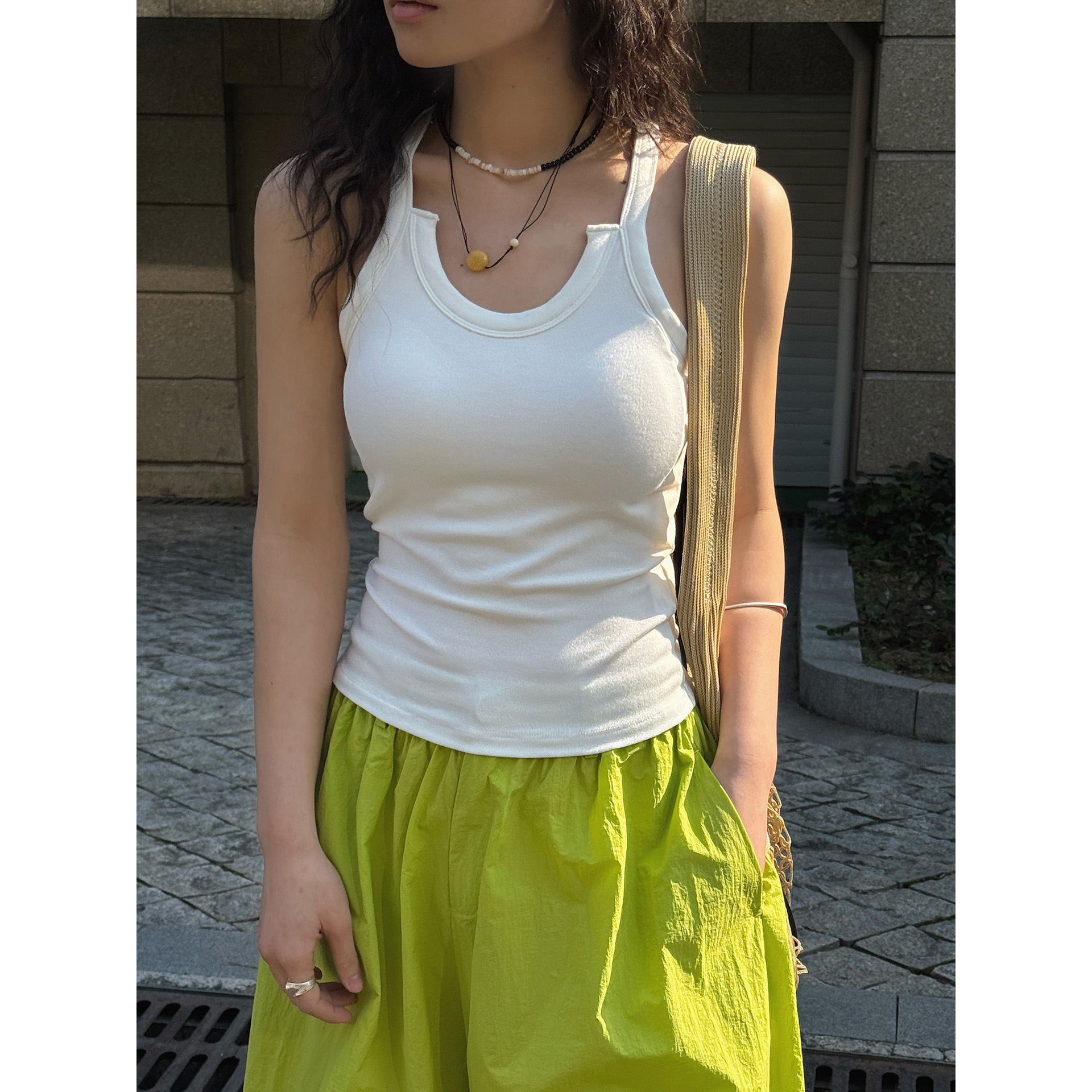 ルーヴル夏の新型アメリカンカジュアル運動感二重襟構造ベストスリム着痩せ上着女性