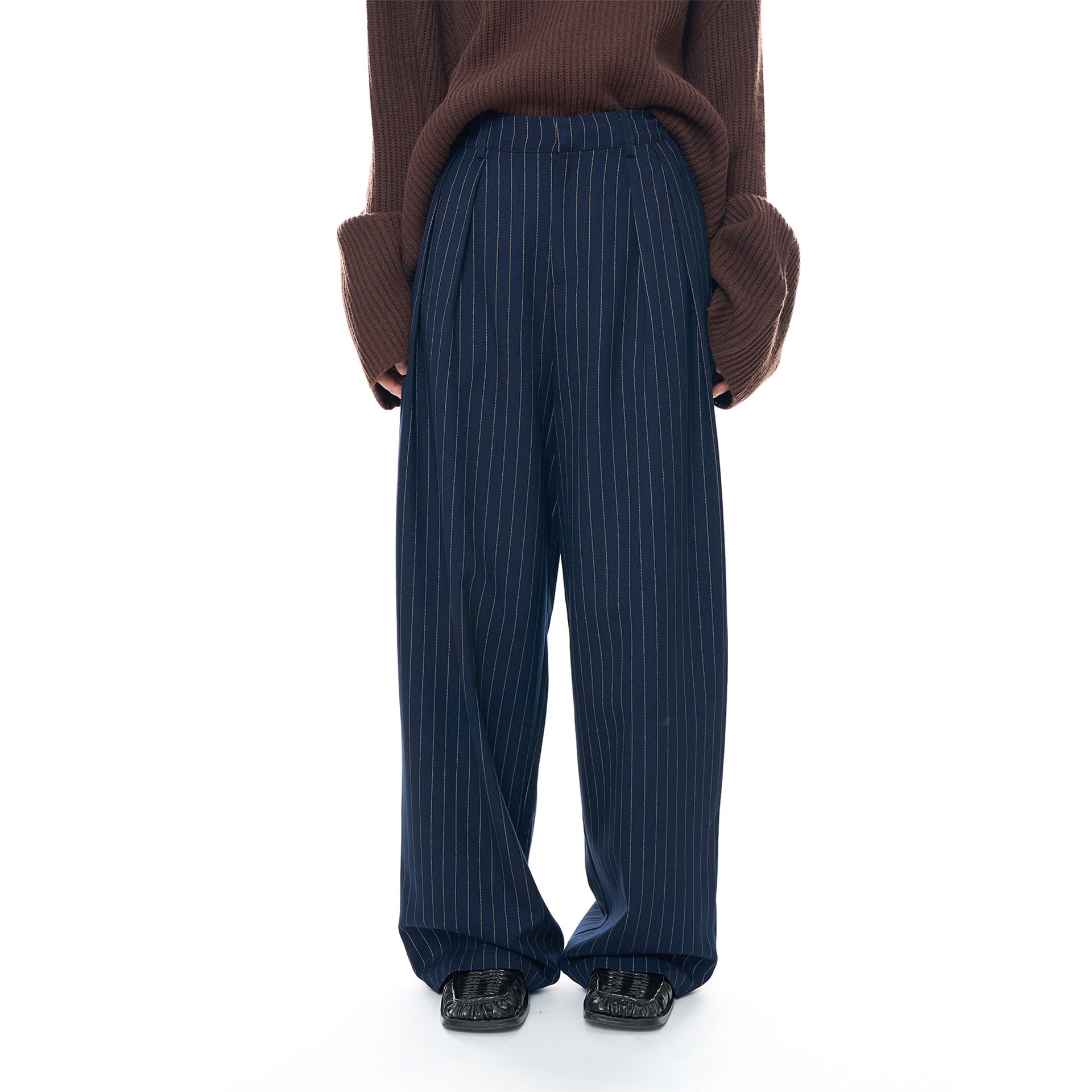 盧浮早春の新型パリ通勤立体ダブルタックストライプのズボンが滑らかで垂れ下がっています。