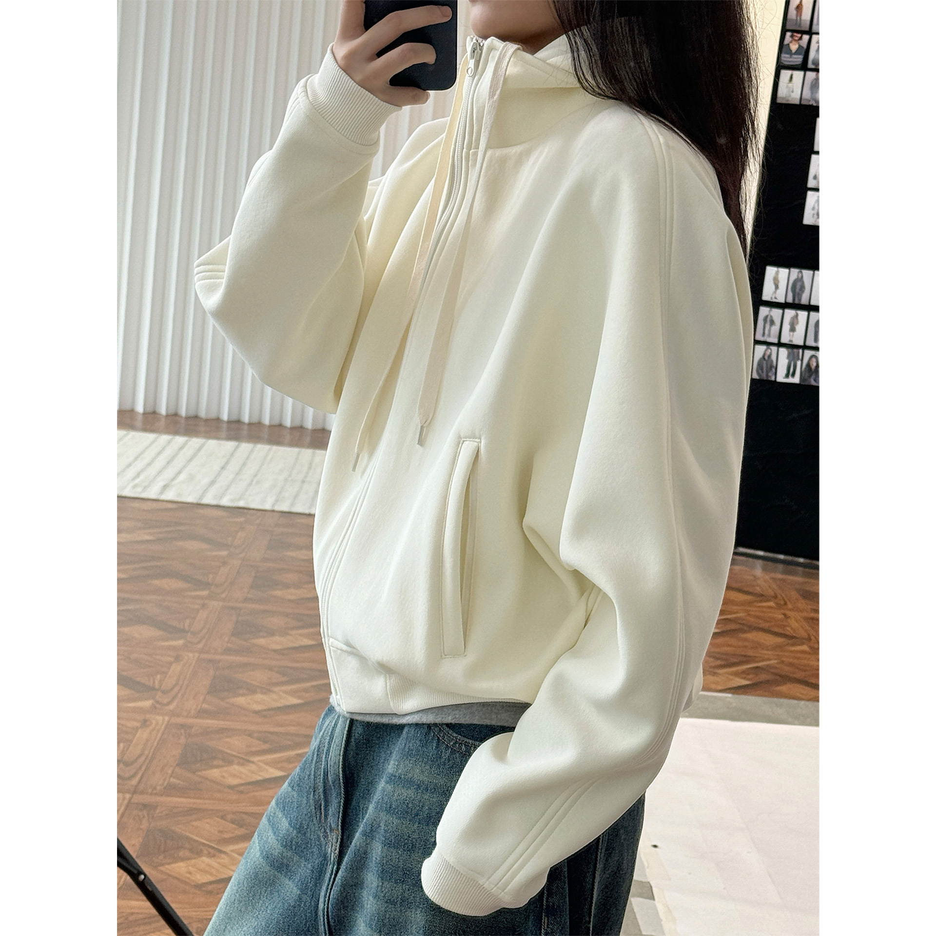 ルーヴル早春の新型アメリカンカジュアル運動風のショートタイプの帽子付きのパーカーのゆったりした形はやせた上着の女性を示しています。