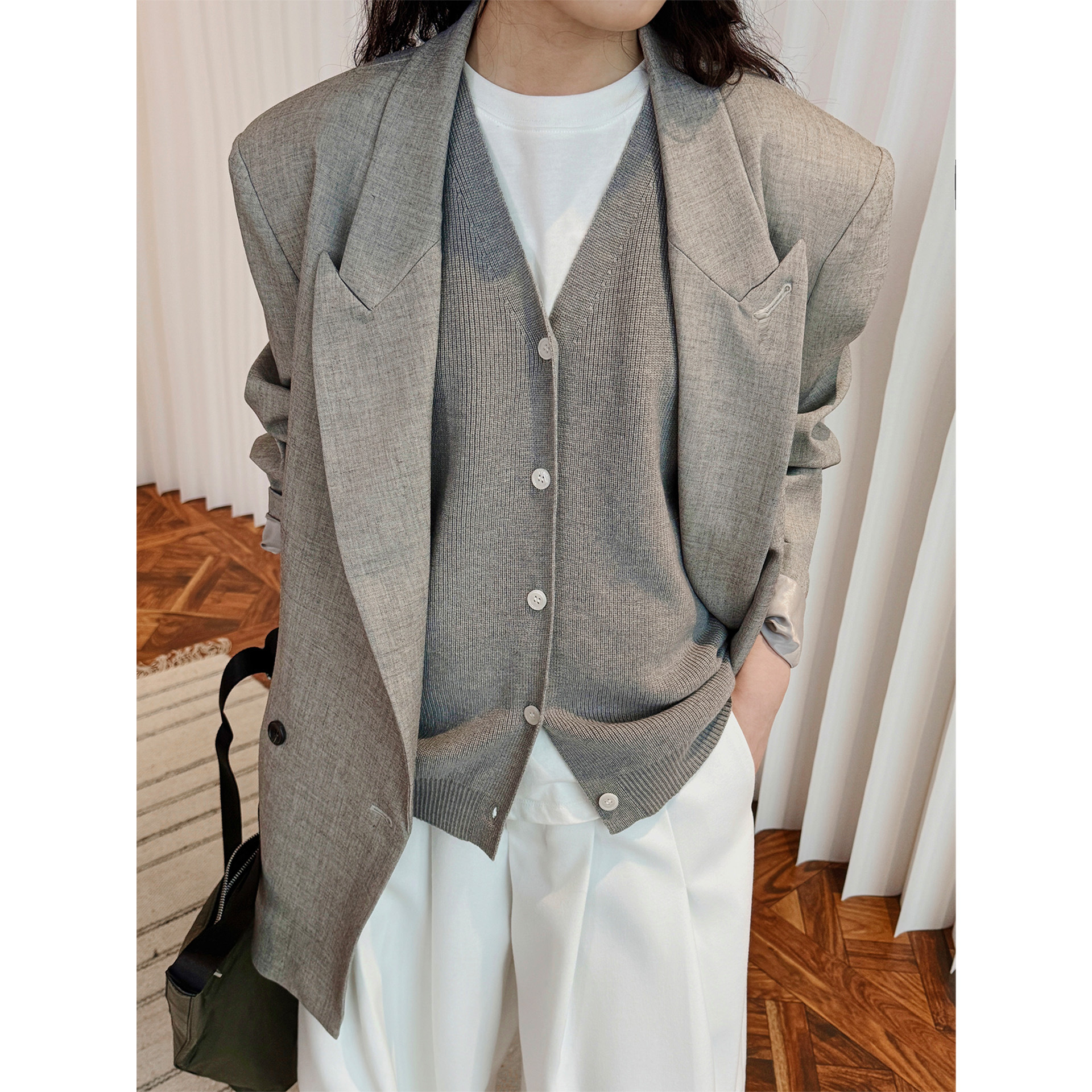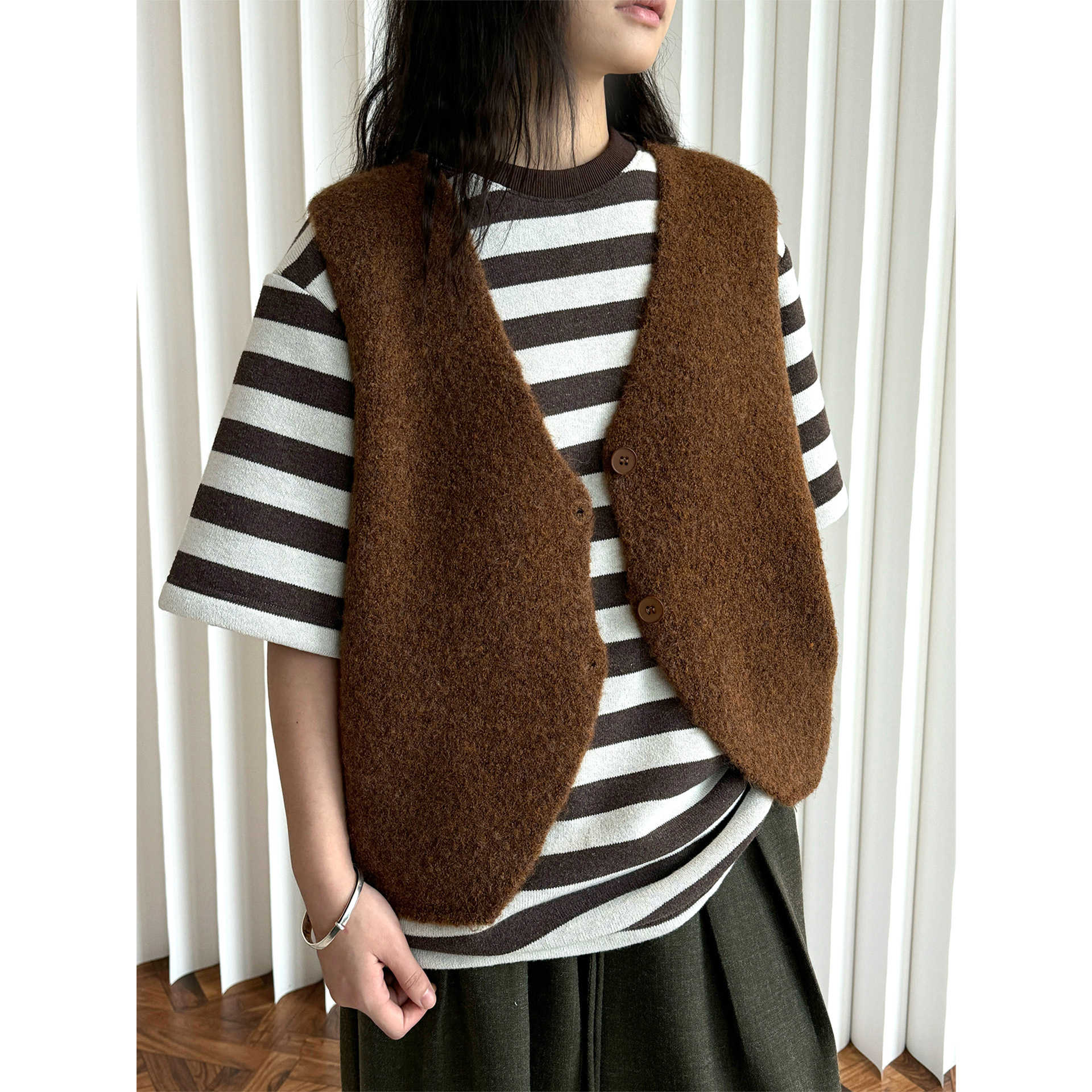 盧浮早春新作日系シンプルカジュアルvネックウールベスト