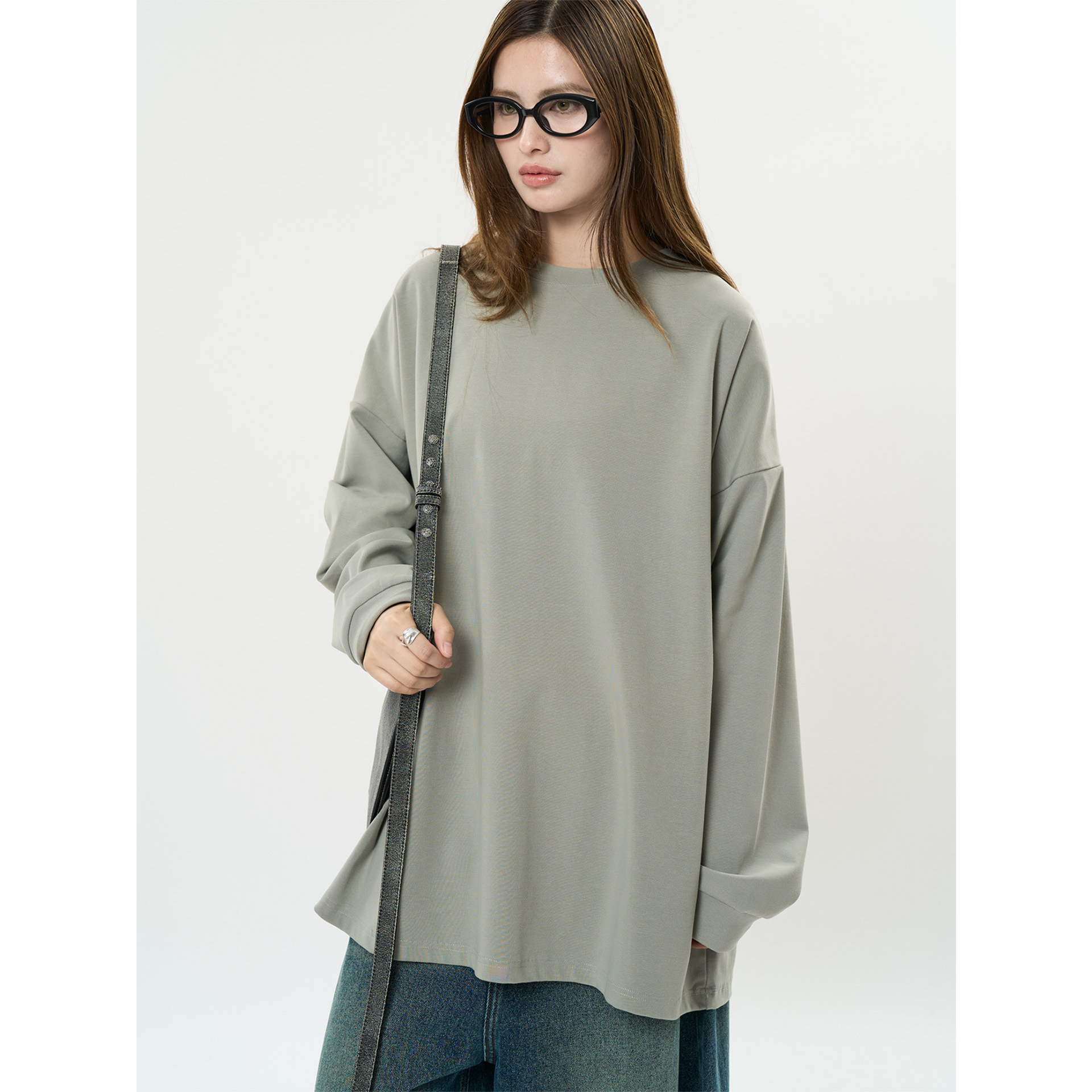 ルーヴル早春新作アメリカンシンプルなリラックス感OVERSIZE長袖tシャツ軽やかで快適な上着の女性